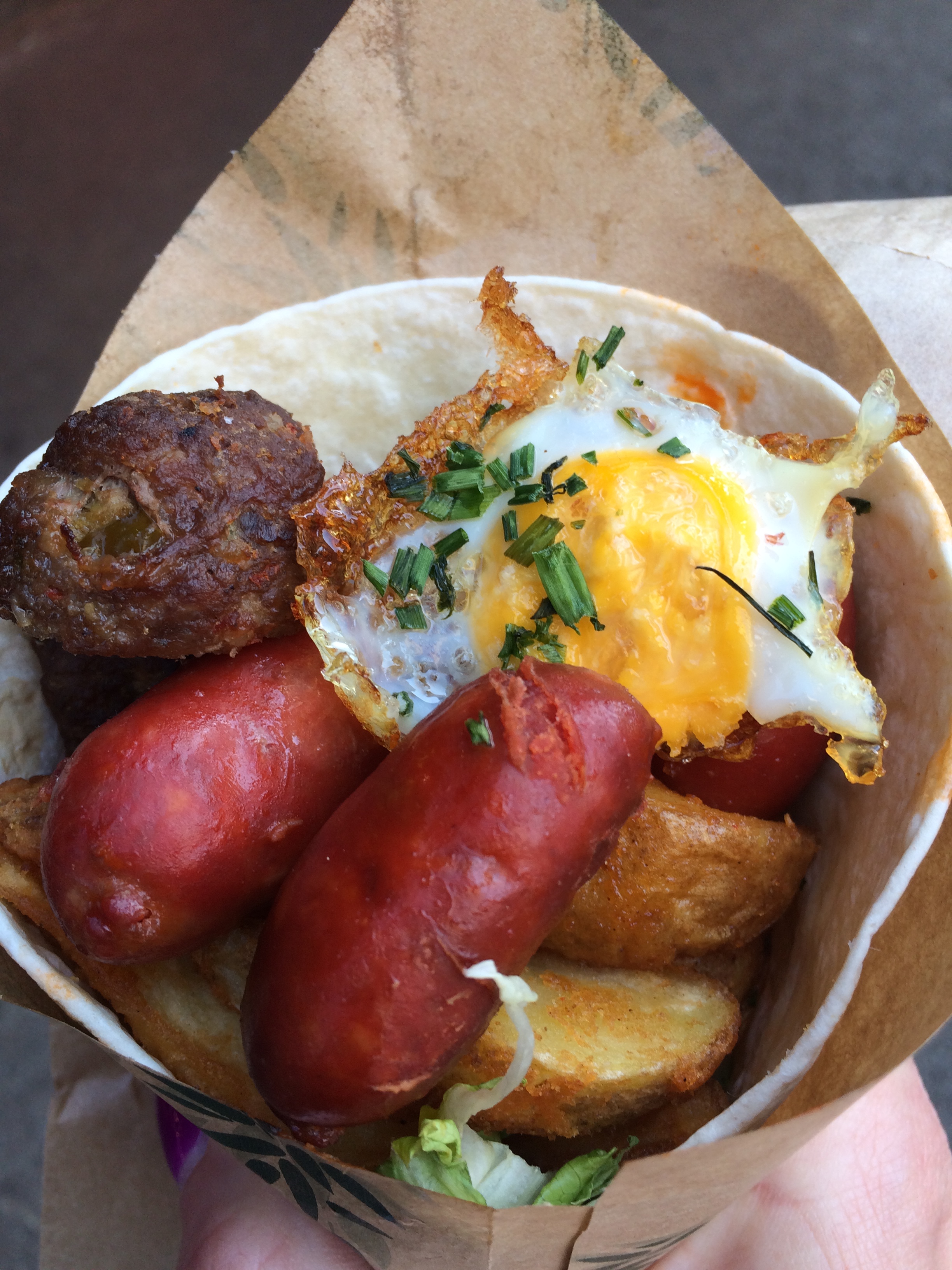 This is the Bomba – it’s the Spanish equivalent of a Scotch egg, minus the egg. There’s a ball of meat at the core, which is surrounded with the potatoey substance found in Spanish croquettes.
