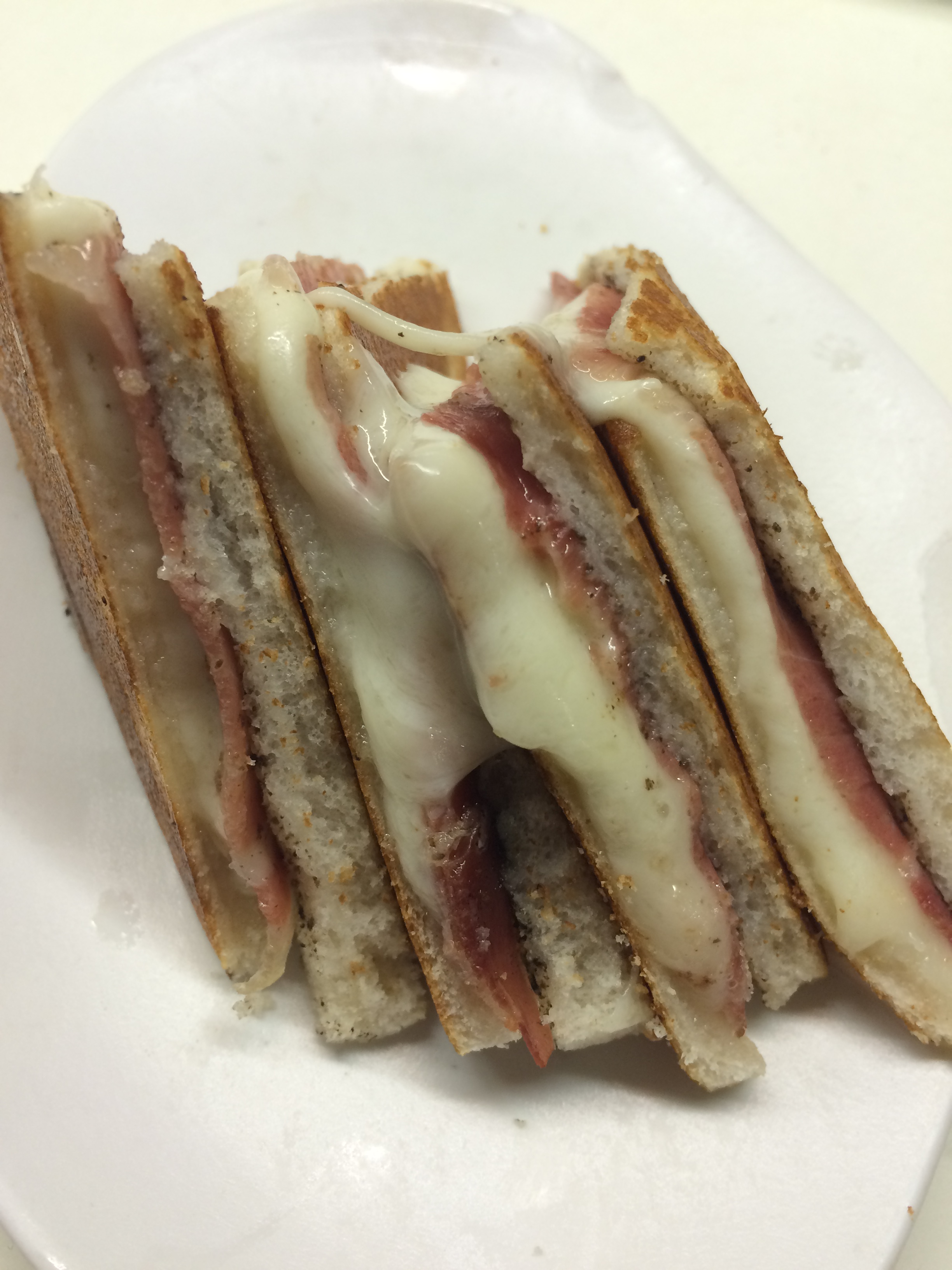 I arrived in Barcelona around 5:00 on Saturday evening, and after dropping my things at my hotel near the Barceloneta metro station, I set off on foot for the most famous street in Barcelona, La Rambla. (I think it is also called Las Ramblas because although it’s a continuous street, its name changes a few times along the way, each with “La Rambla” in the title.) It was bustling with tourists and locals alike. There’s a wide pedestrian strip in the center of the road, which makes it easy to amble along, ignoring souvenir stands and perhaps not ignoring the gelato stands. I was quite hungry and made straight for the Mercat de la Boqueria, which is a feast for all the senses. It is comparable in size to the market I went to in Budapest, and inside are people selling every type of fruit and vegetable known to man (along with a wide range of fresh juices and smoothies), fish, baked goods, and of course: ham, ham, and more ham. You can grab a paper cone filled with freshly shaved ham for about 1.50€. I opted for a wrap with two types of chorizo, a quail egg, and a few patatas bravas to tide me over until dinner time: