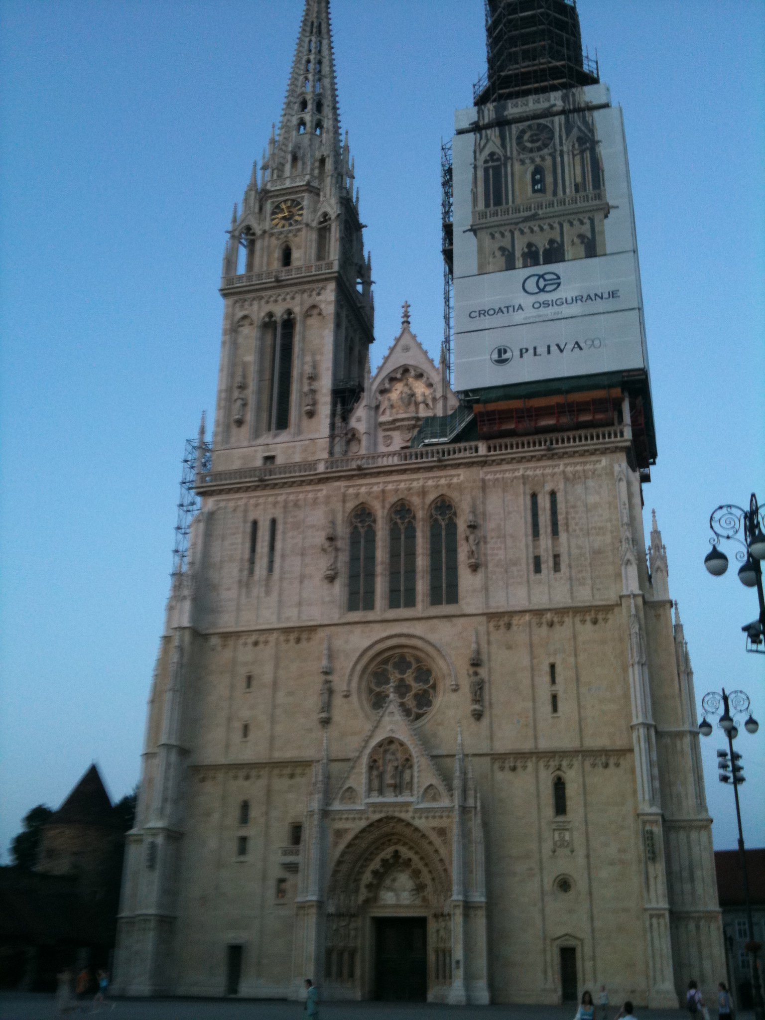 I had been to Zagreb twice before: first in August 2006 with my family and then again (just for an evening) in June 2011 while I was working with World at Play in the nearby city of Karlovac. Zagreb is quite different from the coastal cities – it’s surrounded by small mountains and lacks the beautiful aquatic vistas that make Dalmatia such a treasure. It’s also a grittier city – although it doesn’t bear many scars of the war (unlike the pockmarked streets of old town Dubrovnik and the many abandoned homes you’ll pass while driving through countryside), it bears the signs of a politically restless populace. When I first saw Zagreb in 2006, I was aghast at the amount of graffiti. It was hard to find a building or tram car that didn’t have something scribbled on it – even the beautiful national theater. I had much the same impression in 2011. It’s also pretty small as far as capital cities go – it has a population of 790,000, making it about 2/3 the size of my own hometown in Virginia. The city center is a fairly confined (though very charming!) geographic area, so there just isn’t a ton of city to see.
