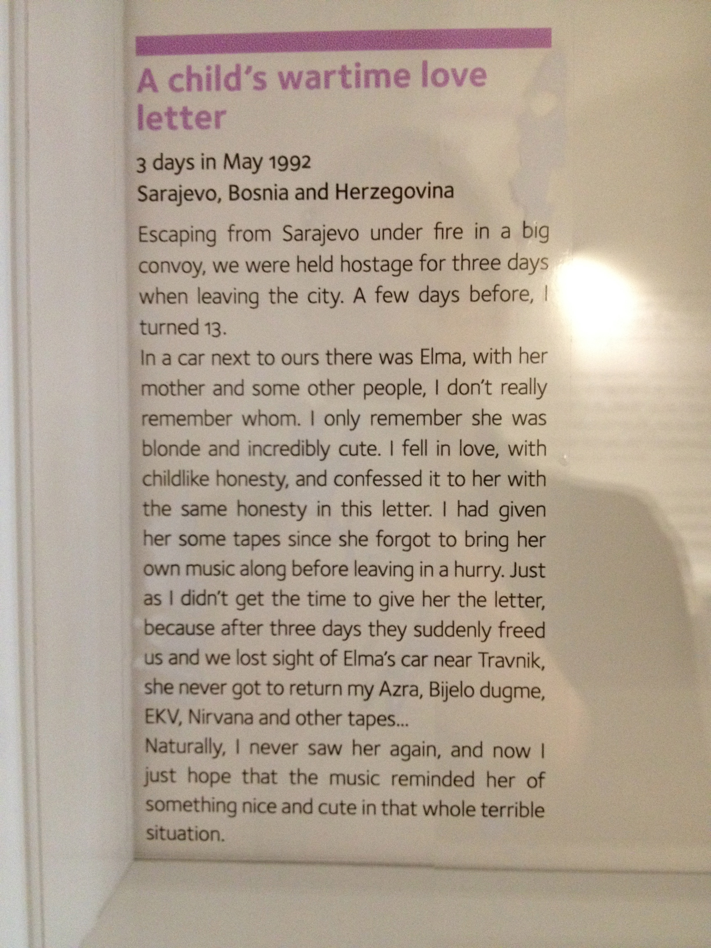Anyway, after enjoying my first burek in nearly three years, I wandered northeast in search of a very unique museum that had been featured in a New York Times article: the Museum of Broken Relationships. People from all over the world (though with a curiously high concentration of entries from Paris and Denver) submit an object that they associate with a past relationship and then write an explanation – sometimes just a sentence but sometimes multiple paragraphs, explaining the significance of the object within the context of the relationship. It was a really fascinating collection of random curios and even more interesting insight into the nature of relationships and love.