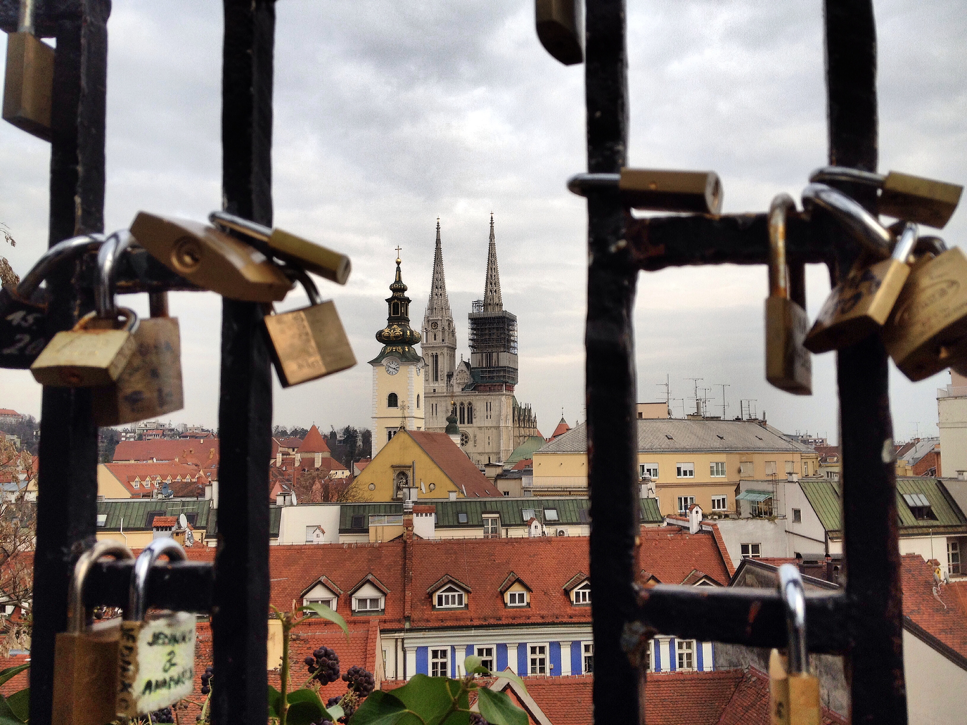 I enjoyed wandering around this part of the city. It’s up on a hill, and I remember that it was lovely during the summer evening we spent there in 2011. There are great views of the city, lots of cute restaurants and stores, and a lot of people strolling casually around. There are also elements of Paris (will I just look for Paris everywhere now?) – part of the area is called Strossmartre (like Montmartre), and Zagreb has a decent number of couples who have adopted the put-on-a-lock-and-throw-away-the-key approach to monogamy made famous by the Pont des Arts in Paris: